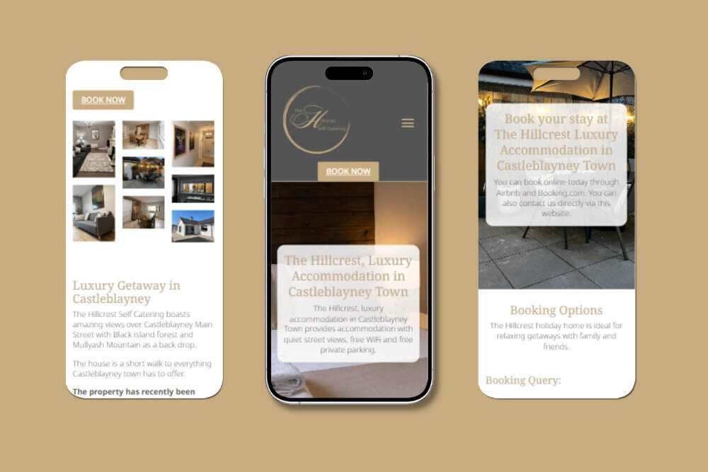 The Hillcrest now has a professional website Emma is proud to share. Guests have a clear destination to visit before booking. The site gives Emma an independent presence alongside the booking platforms and makes a strong first impression for anyone considering a stay in Castleblayney.Want a new website?