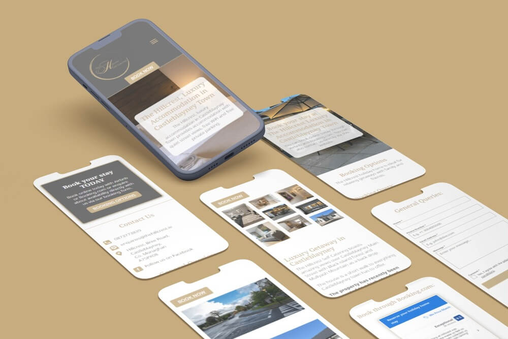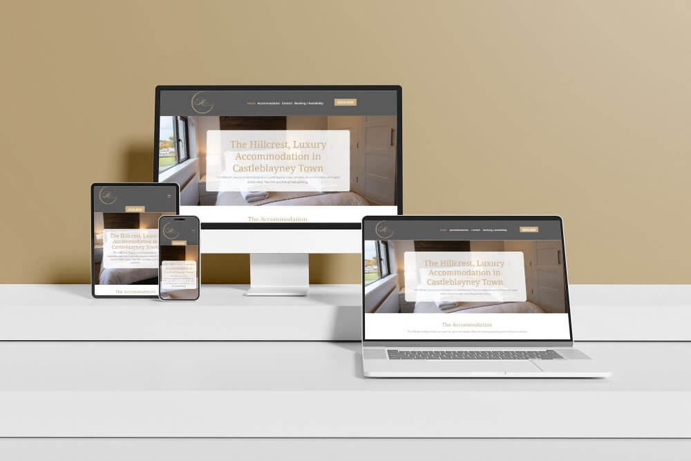 The Hillcrest is a luxury self-catering property in Castleblayney town, Co. Monaghan. Emma needed a simple, stylish website that showed off the accommodation and gave guests an easy way to check availability and book — direct or through Airbnb and Booking.com.